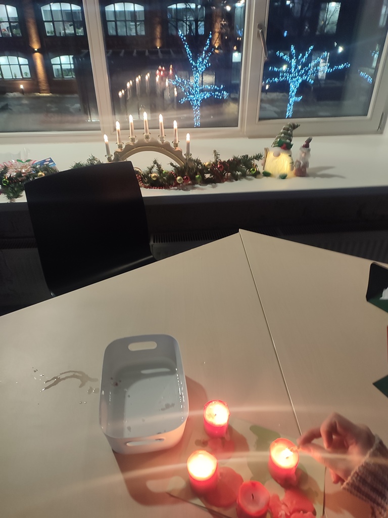 В Гёте Институте, находящемся теперь в бывших цехах кондитерской фабрики Большевик (ранее находился в бывшем посольстве ГДР) прошёл ежегодный праздник Запахи и Вкусы Рождества. Было много интересных квестов, гаданий, загадок и мастер классов. И естественно вкуснейший немецкий специалитет. Модератор (я) попробовал глитвейн и рождественский кекс бутерштолле. Праздник прошёл очень позитивно.